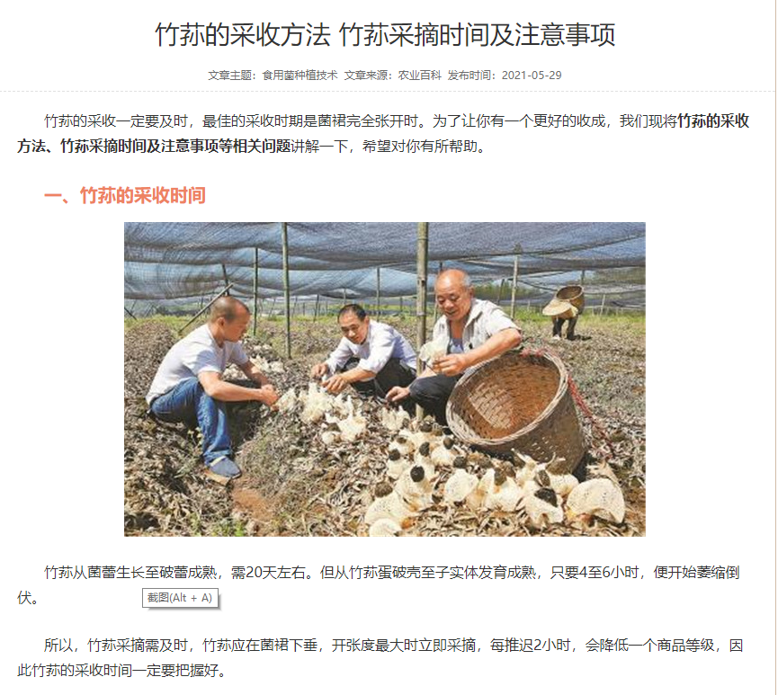 竹荪的采收方法 竹荪采摘时间及注意事项
