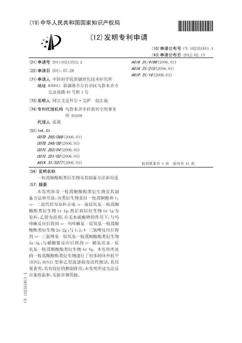 一枝蒿酮酸酯类衍生物及其制备方法和用途