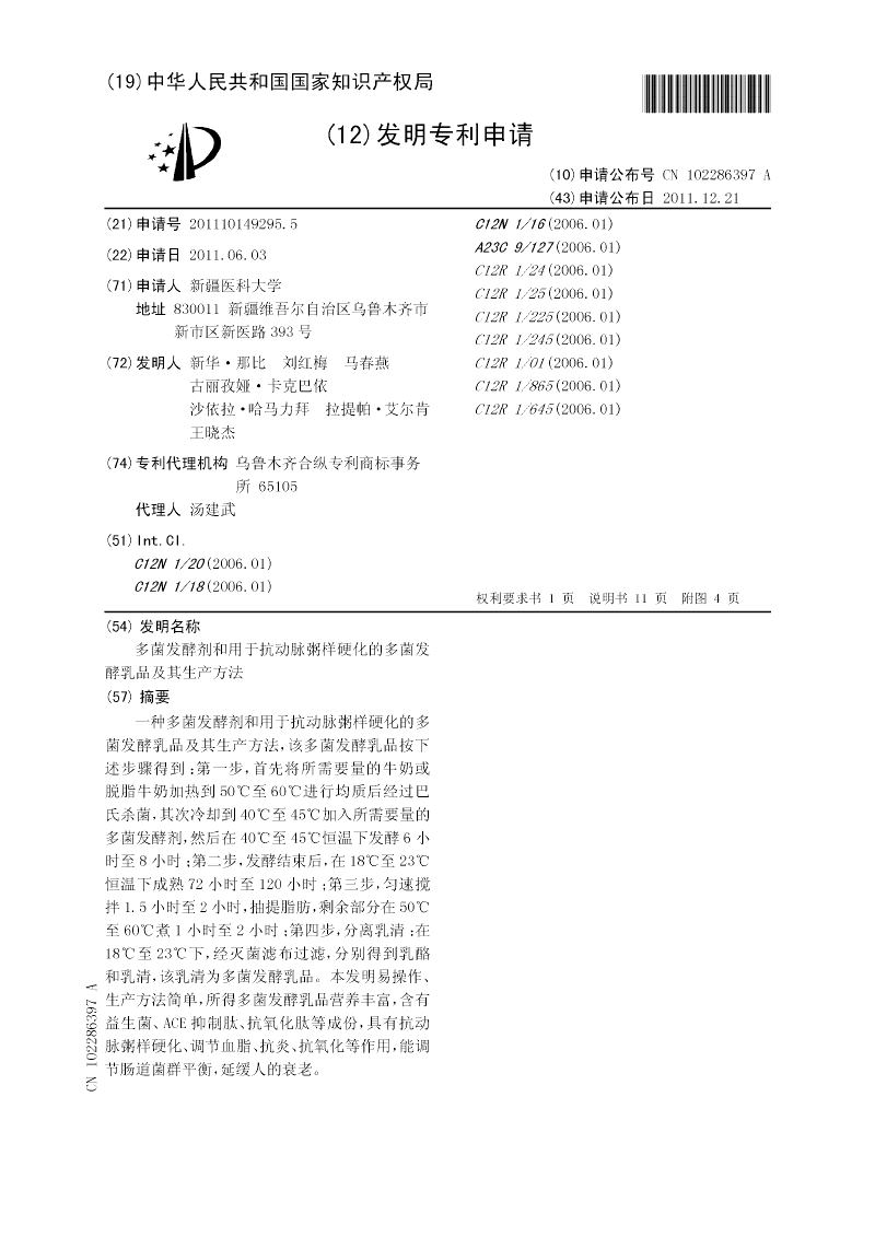 多菌发酵剂和用于抗动脉粥样硬化的多菌发酵乳品及其生产方法