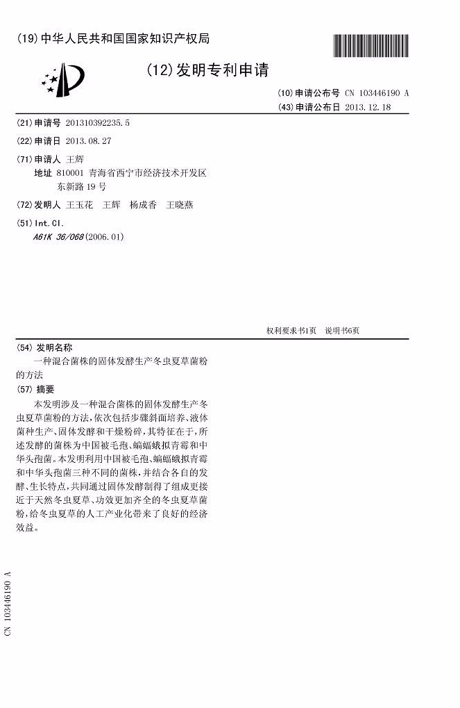一种混合菌株的固体发酵生产冬虫夏草菌粉的方法