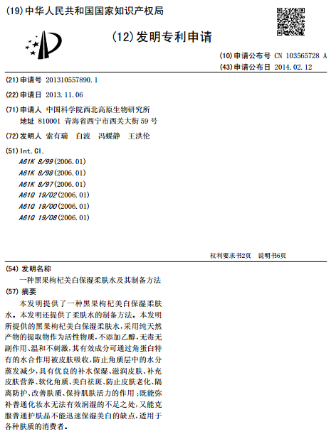 一种黑果枸杞美白保湿柔肤水及其制备方法