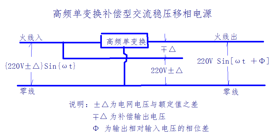 一种节能、环保、低成本高频单变换补偿型交流稳压移相电源