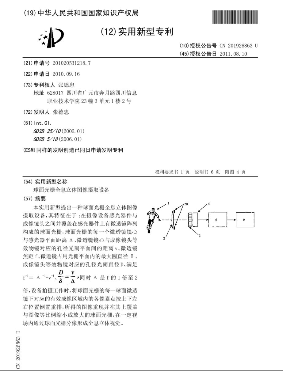 球面光栅全息立体图像摄取设备