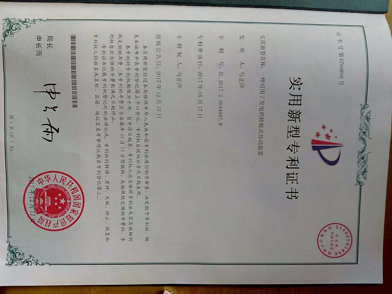 无需任何能源可以发电的转轮式传动装置