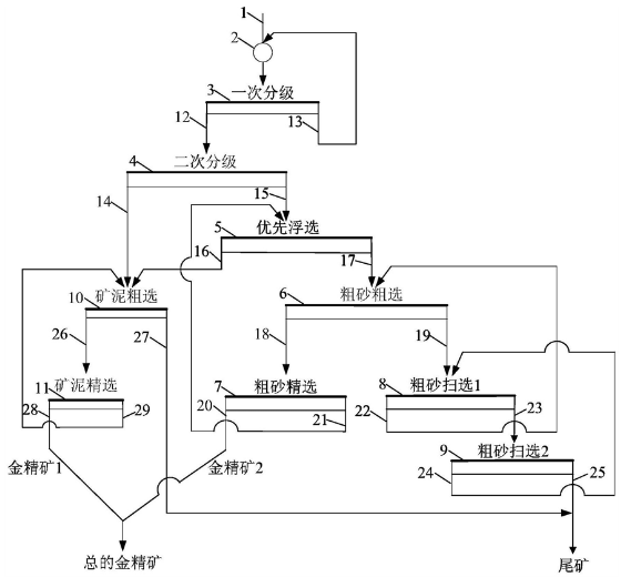 一种脉金矿石的粗砂与次生矿泥分离—浮选工艺