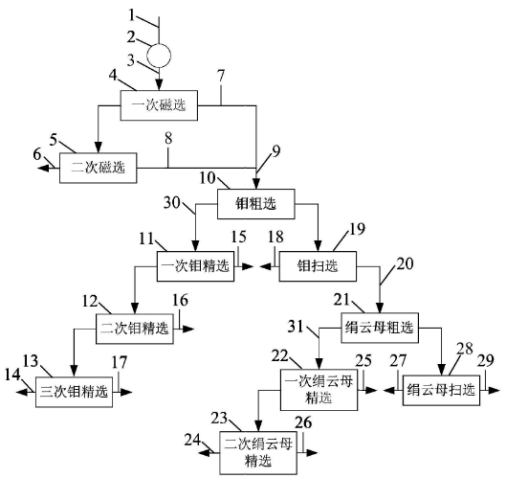 一种选金尾矿综合回收铁、钼、绢云母的工艺