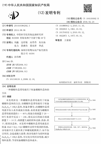 一种硼酸锌晶须母液用于制备硼酸锌晶体的方法