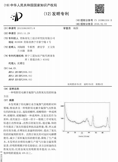 一种吸附铝电解含氟烟气改性氧化铝的制备方法
