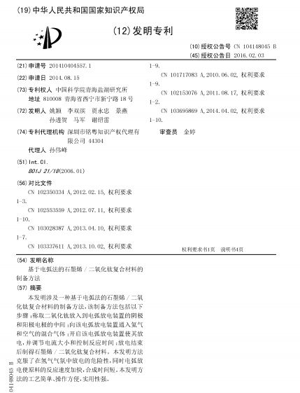 基于电弧法的石墨烯/二氧化钛复合材料的制备方法