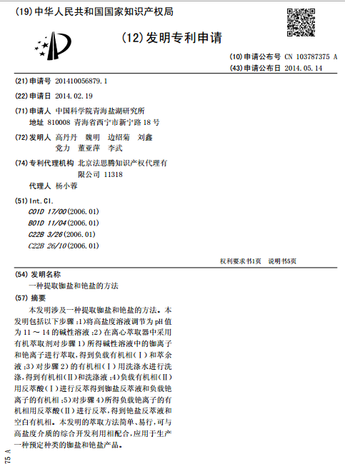 一种提取铷盐和铯盐的方法
