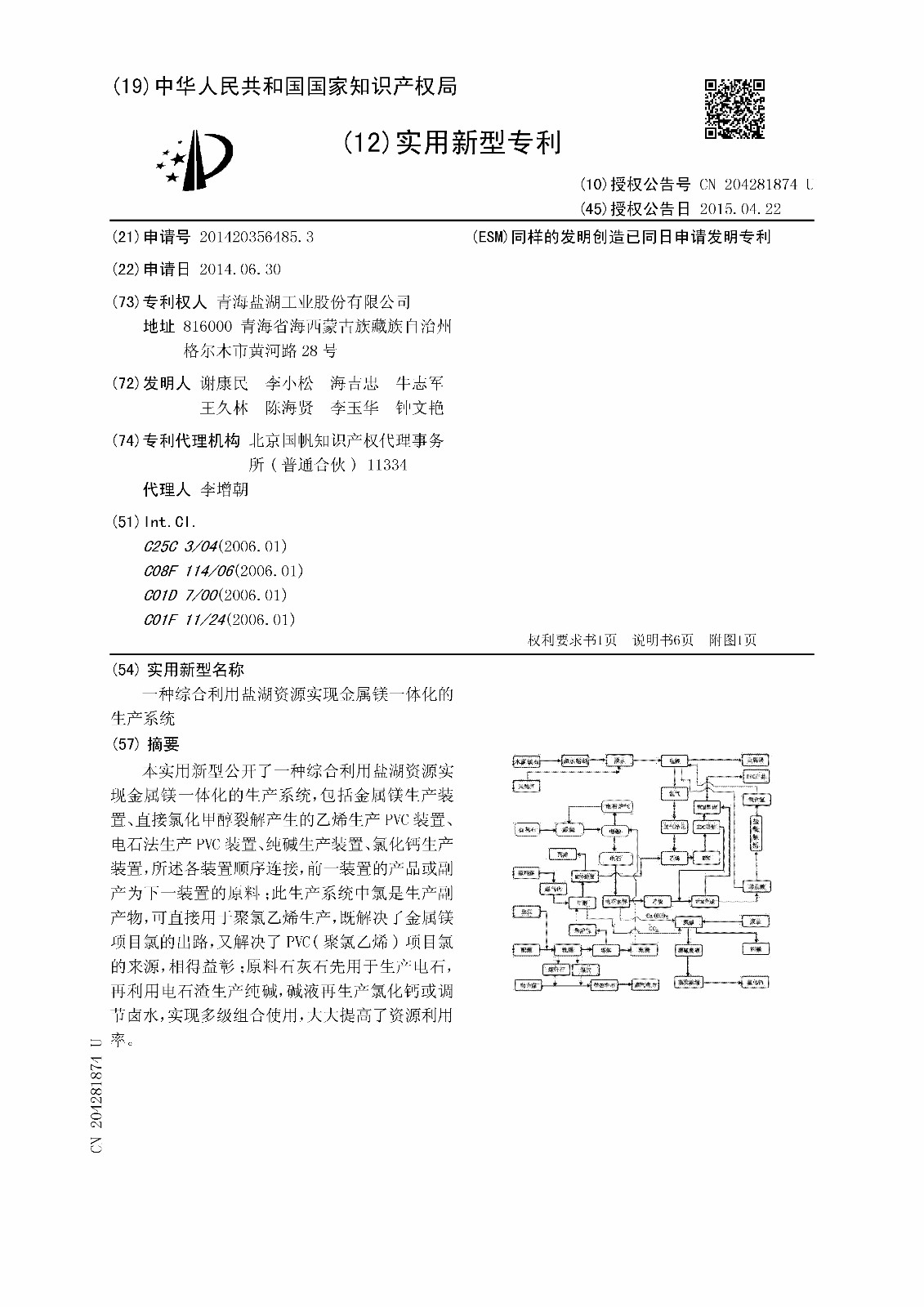 一种综合利用盐湖资源实现金属镁一体化的生产系统