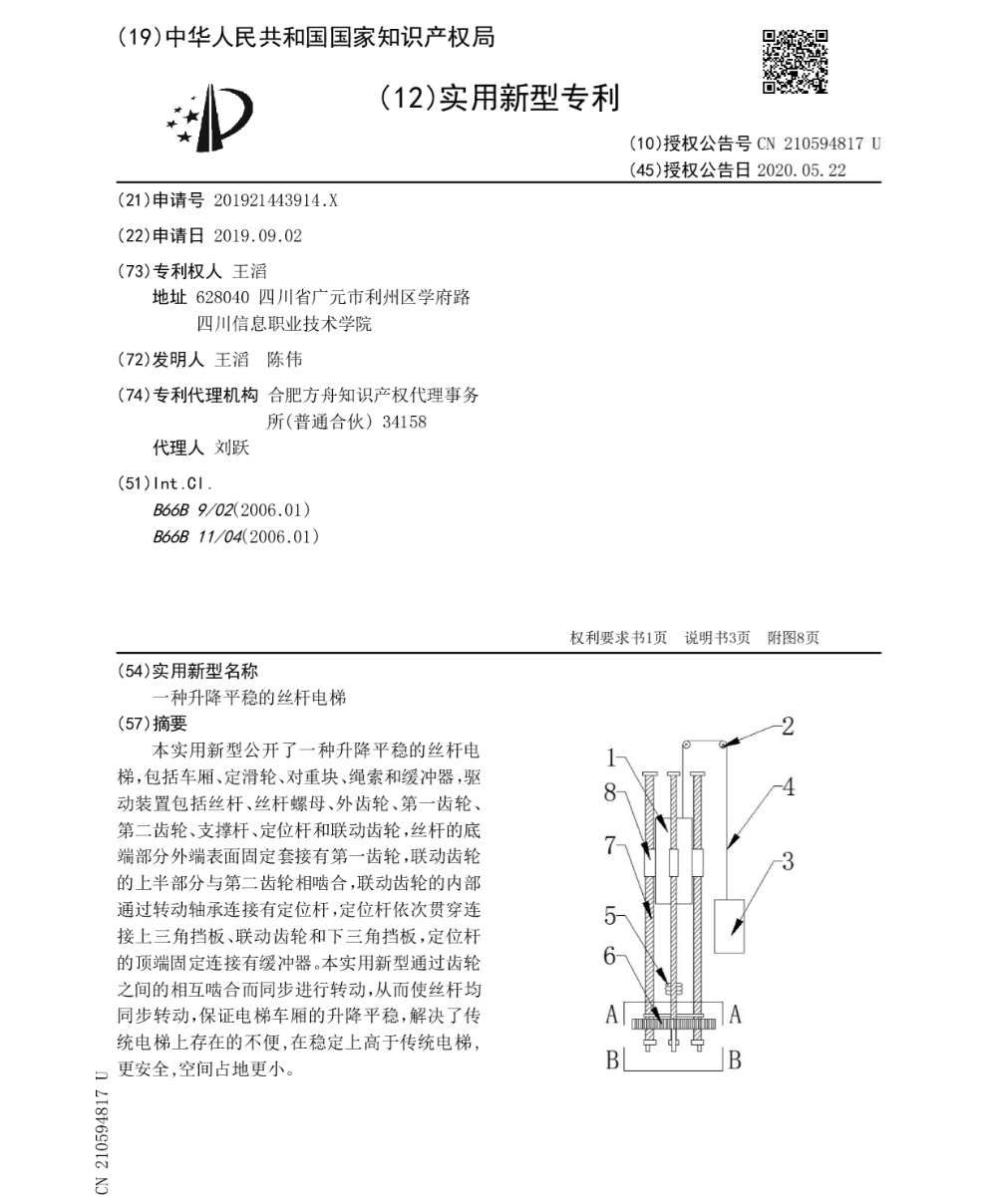一种升降平稳的丝杆电梯