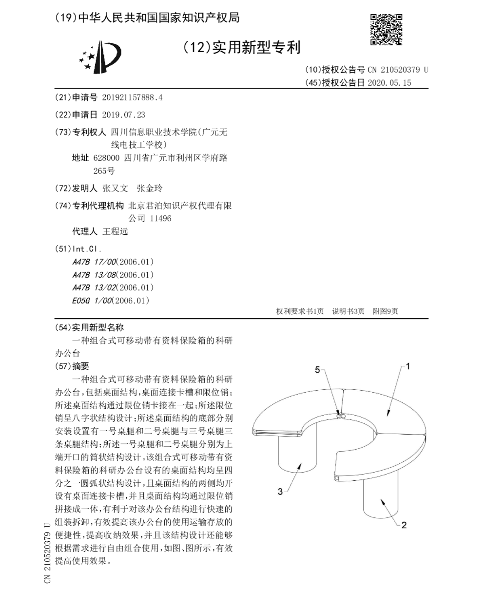一种组合式可移动带有资料保险箱的科研办公台