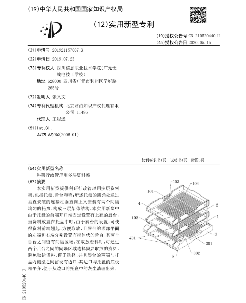 科研行政管理用多层资料架