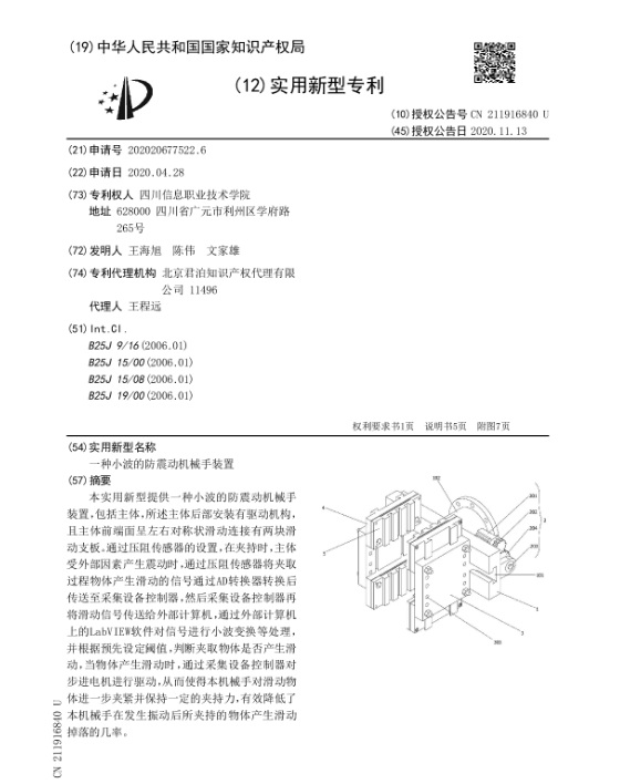 一种小波的防震动机械手装置