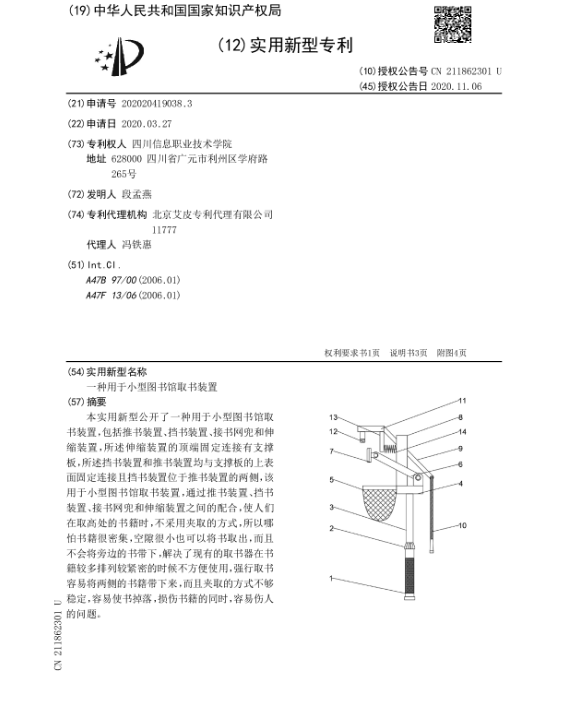 一种用于小型图书馆取书装置