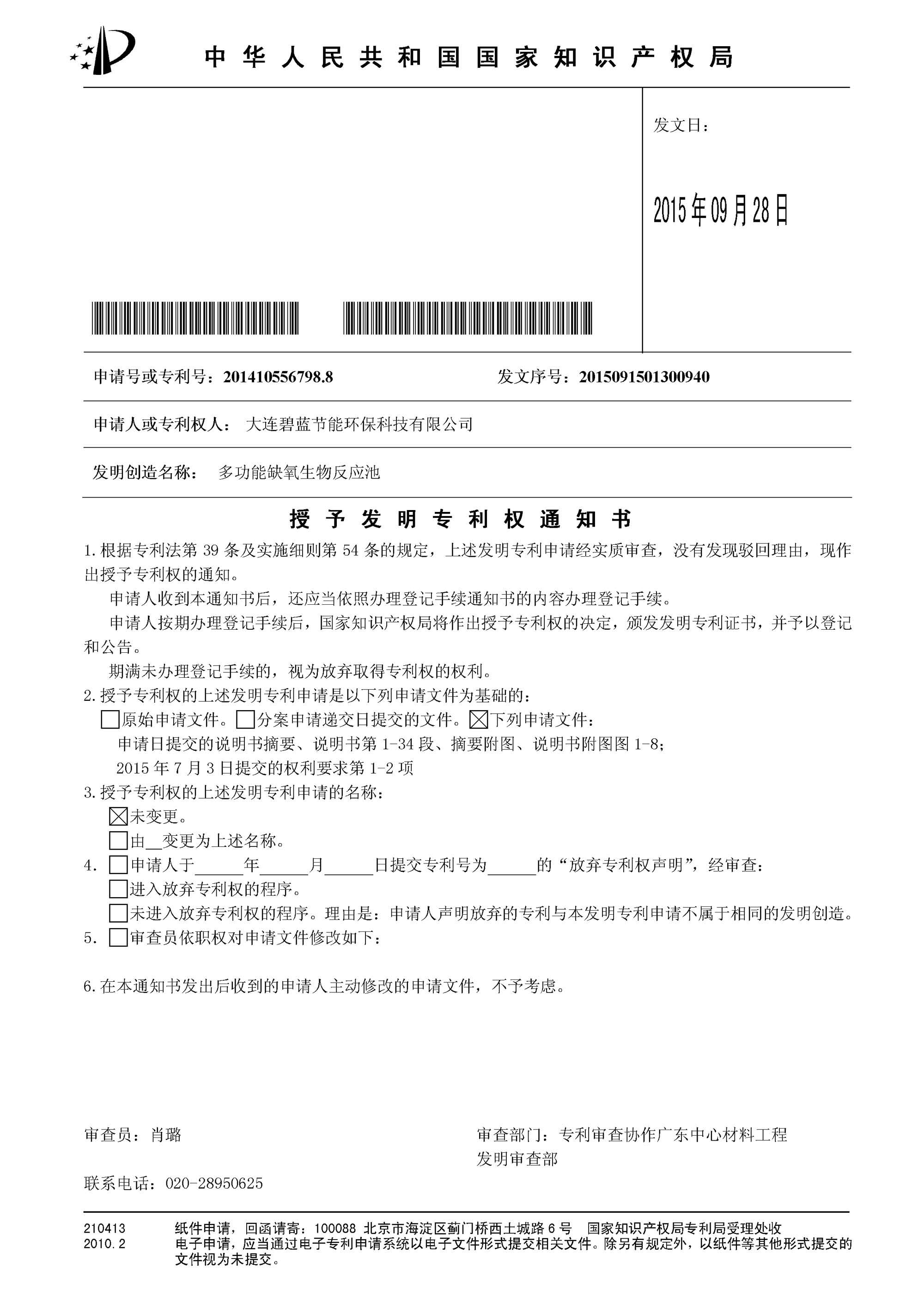 环保类授权未缴费发明专利多功能缺氧生物反应池