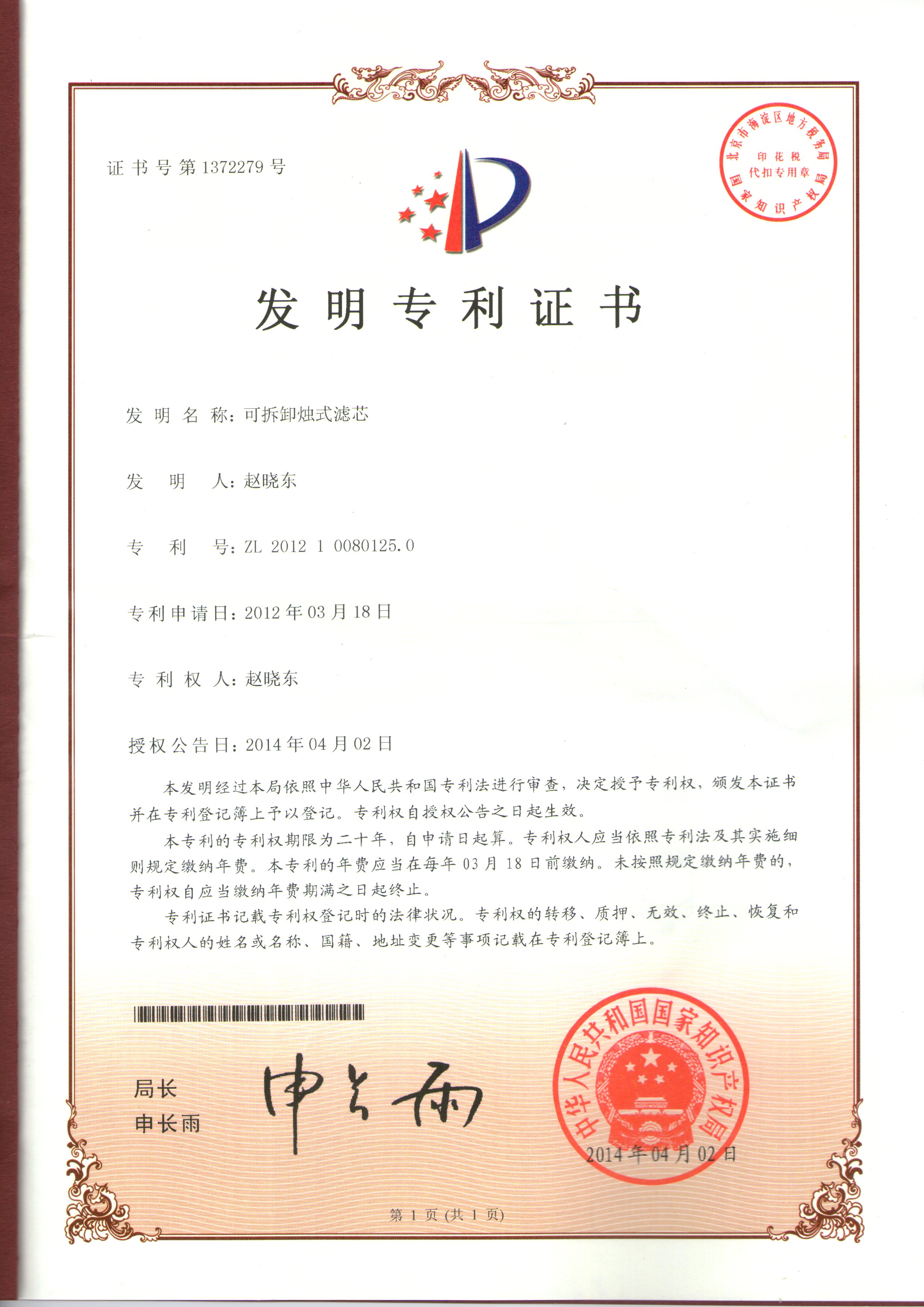可拆卸烛式滤芯