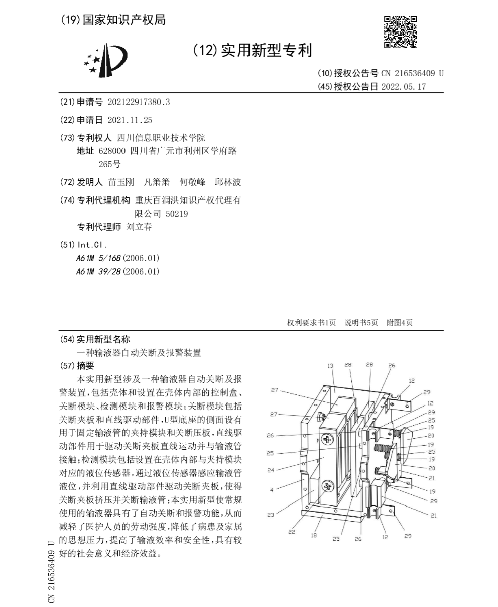 一种输液器自动关断及报警装置