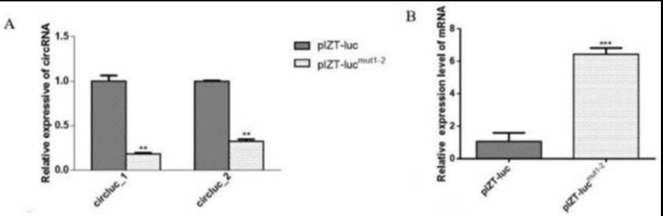 封闭形成circRNA的断裂位点提高萤火虫荧光素酶基因表达水平的方法