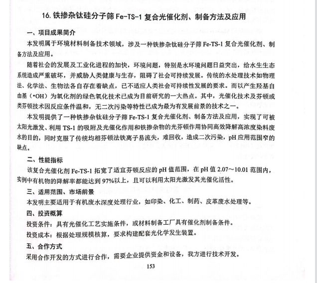 铁掺杂硅分子筛 Fe-TS-1复合光催化剂制备方法及应用
