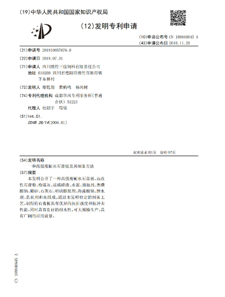 一种高强度耐水石膏板及其制备方法
