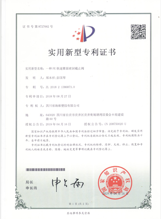 一种PE快速锥面密封截止阀