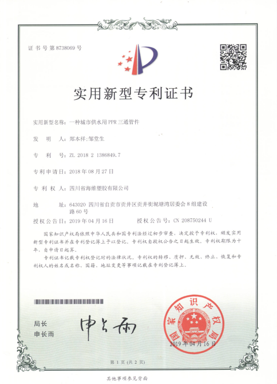 一种城市供水用PPR三通管件