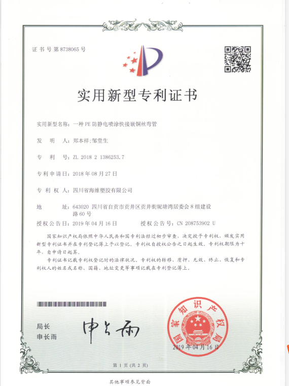 一种PE防静电喷涂快速嵌铜丝弯管