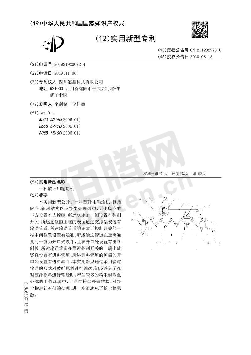 一种玻纤用输送机实用新型专利