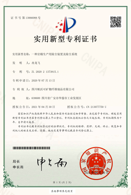 一种岩棉生产用除尘装置及除尘系统