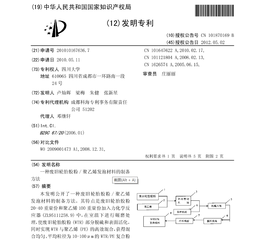 一种废旧轮胎胶粉/聚乙烯发泡材料的制备方法