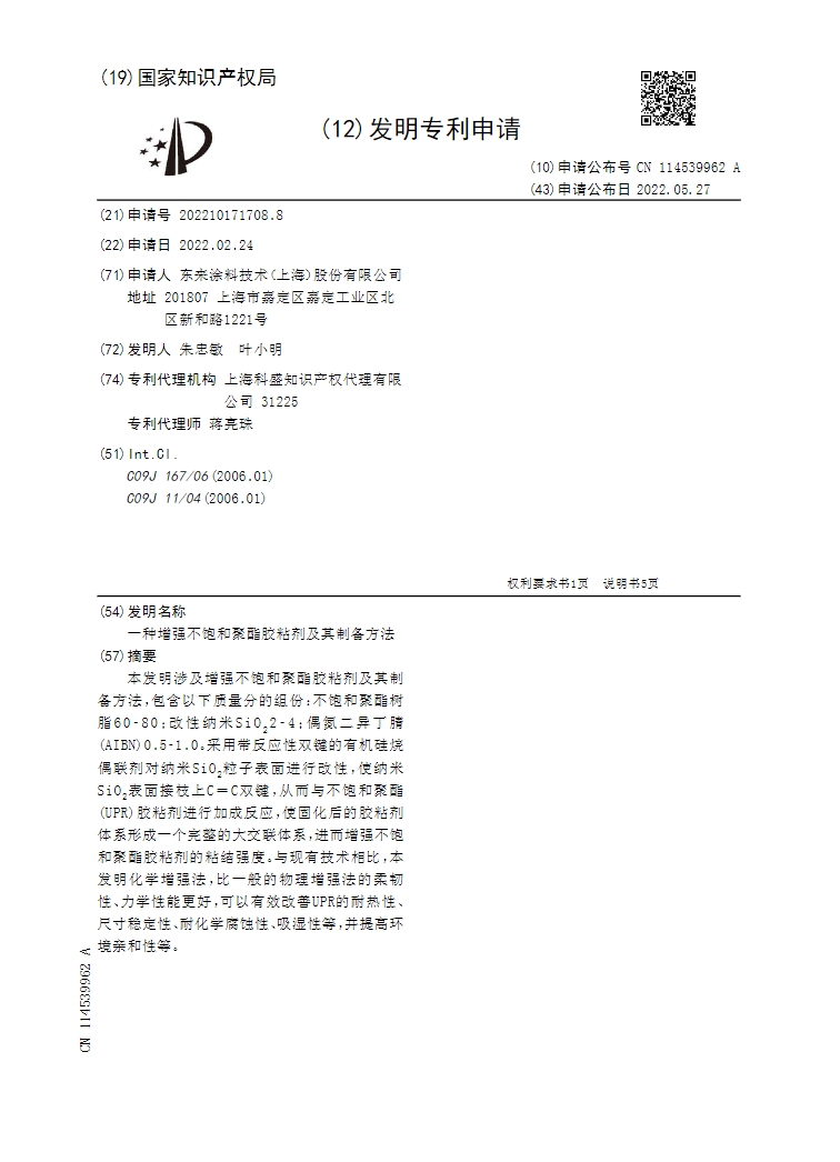 一种增强不饱和聚酯胶粘剂及其制备方法
