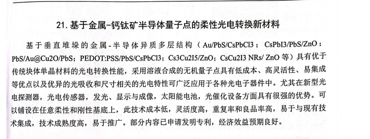 基于金属-钙钦矿半导体量子点的柔性光电转换新材料