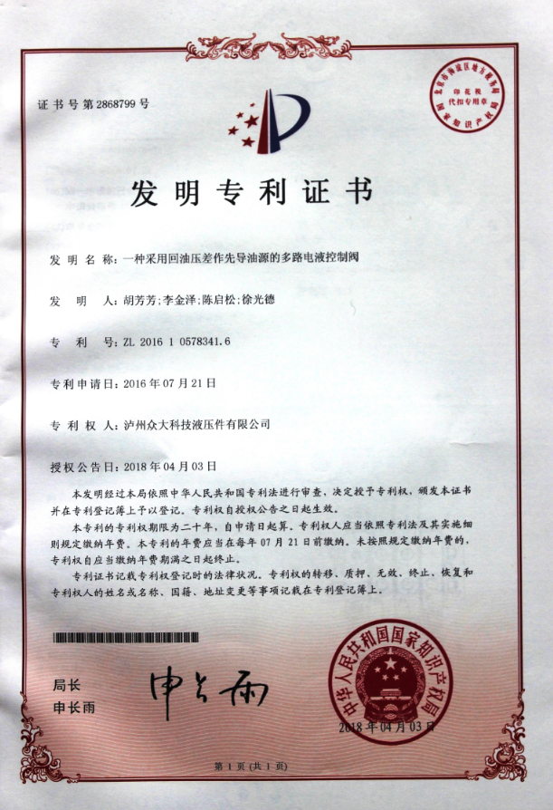 一种采用回油压差作先导油源的多路电液控制阀的发明专利