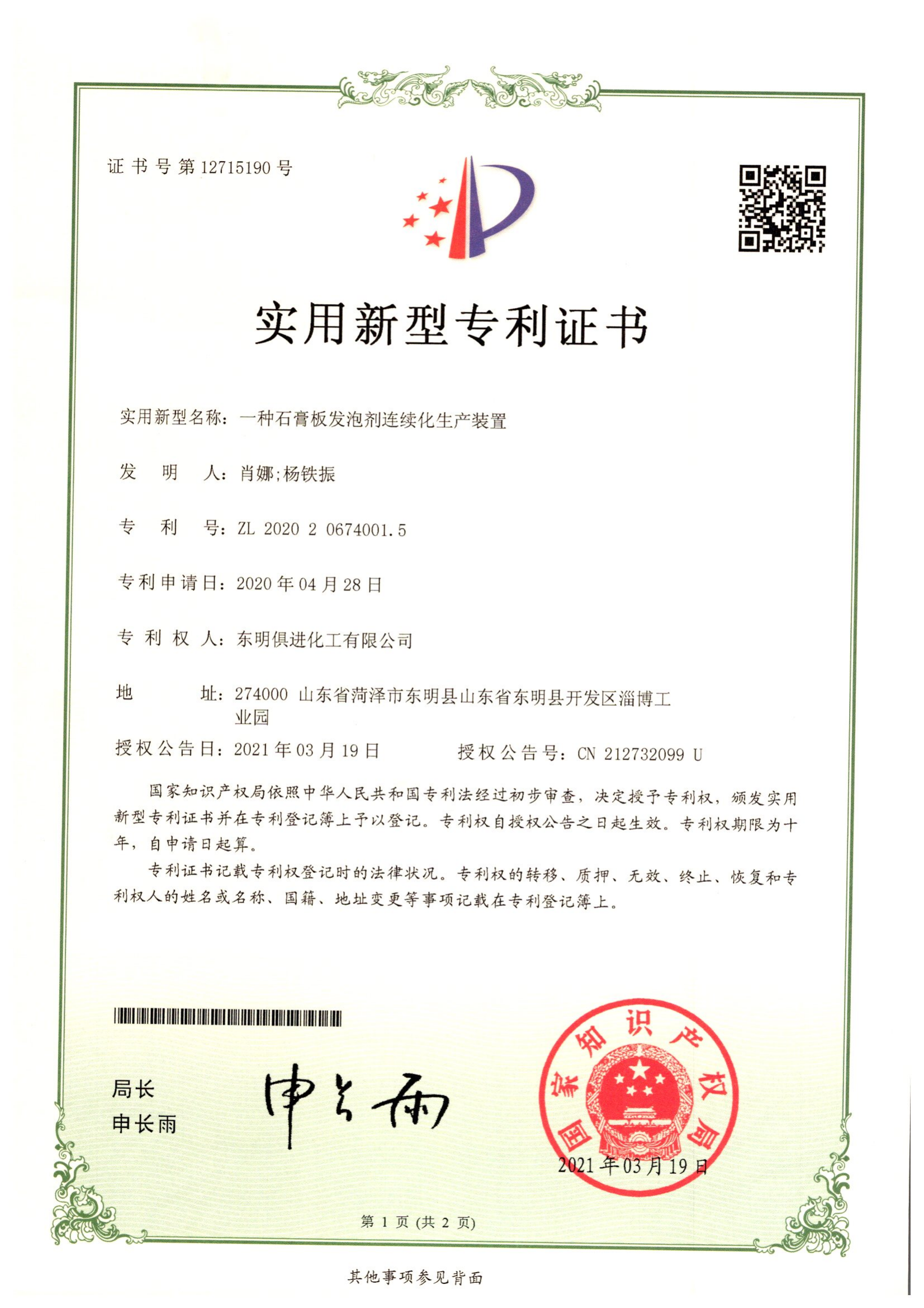 一种石膏板发泡剂连续化生产装置 [实用新型]