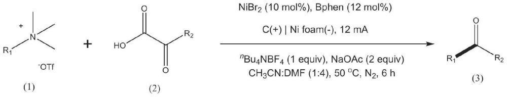 一种实现芳香三甲基铵盐与α-酮酸镍催化的脱羧偶联电催化方法