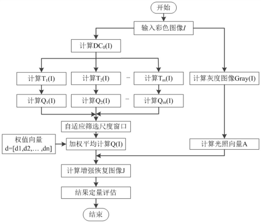 自适应多尺度暗通道先验的水下目标探测图像增强方法