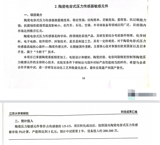 陶瓷电容式压力传感器敏感元件