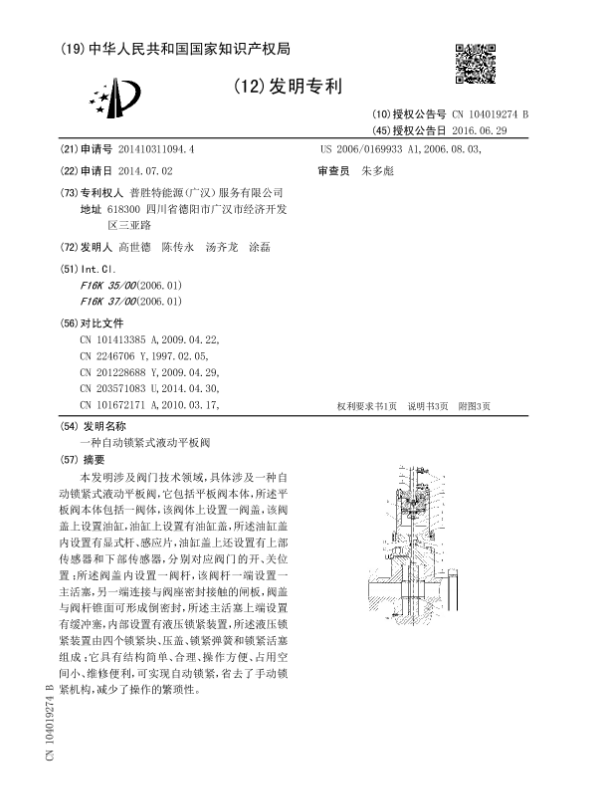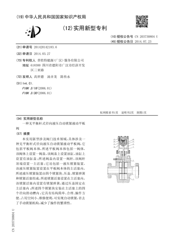 一种无平衡杆式径向液压自动锁紧液动平板阀