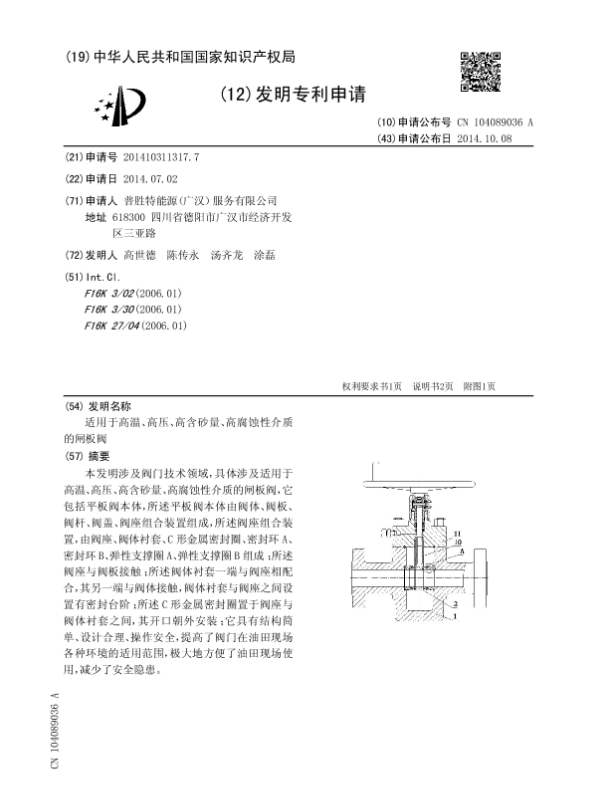 适用于高温、高压、高含砂量、高腐蚀性介质的闸板阀