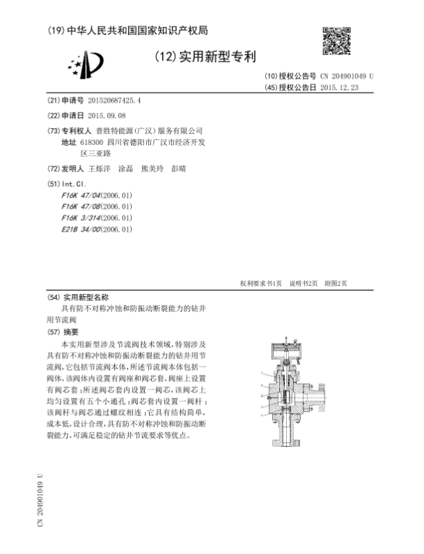 具有防不对称冲蚀和防振动断裂能力的钻井用节流阀