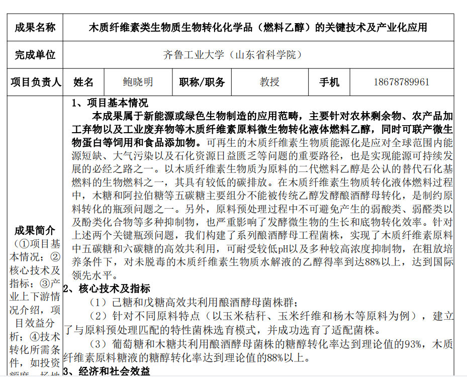 木质纤维素类生物质生物转化化学品(燃料乙醇)的关键技术及产业化应用