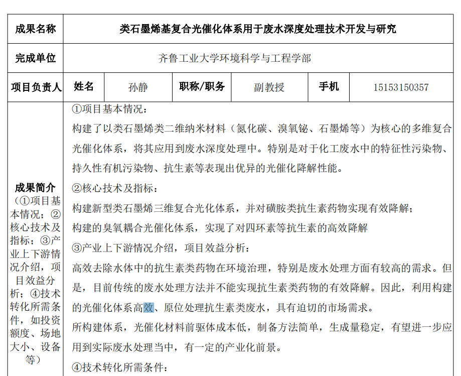 类石墨烯基复合光催化体系用于废水深度处理技术开发与研究