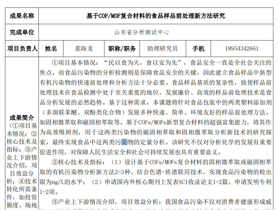 基于COF/MOF复合材料的食品样品前处理新方法研究