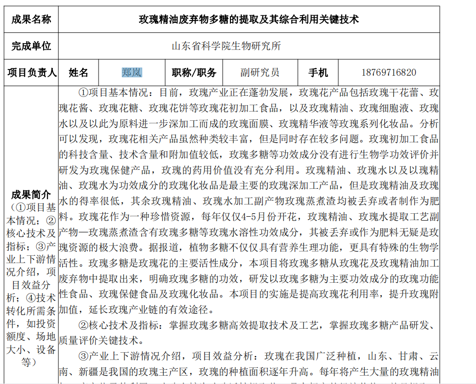 玫瑰精油废弃物多糖的提取及其综合利用关键技术