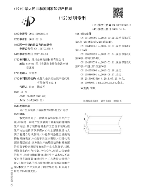 可产生负氧离子墙面装饰材料的生产方法