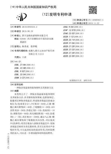 一种隔音保温墙体装饰材料及其制备方法