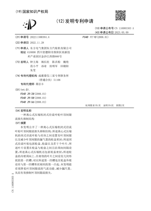 一种离心式压缩机闭式径流叶轮叶顶间隙流损失抑制结构