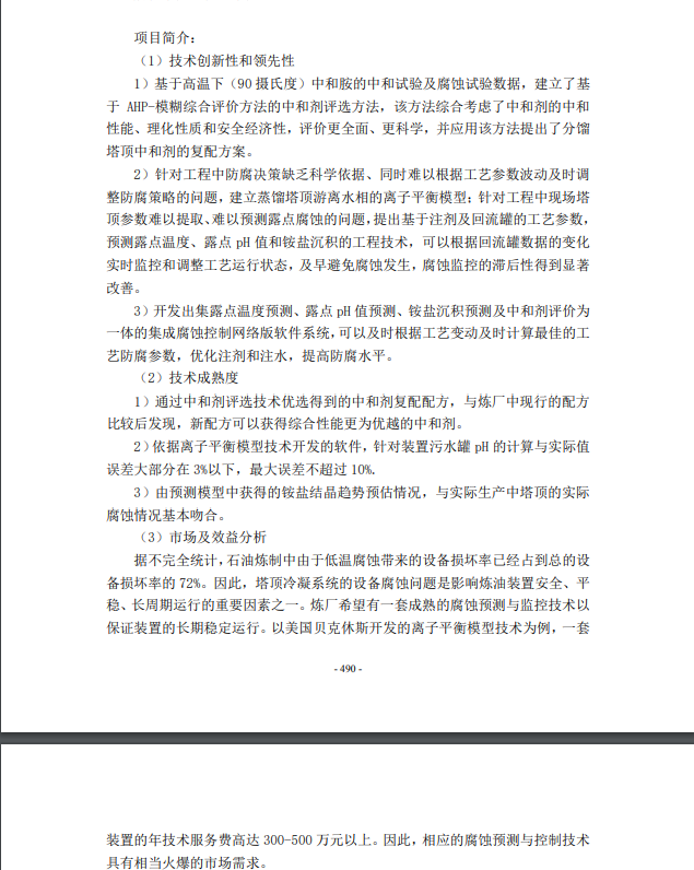 炼油主体装置分馏塔顶离子平衡模型及中和剂评选技术研 究